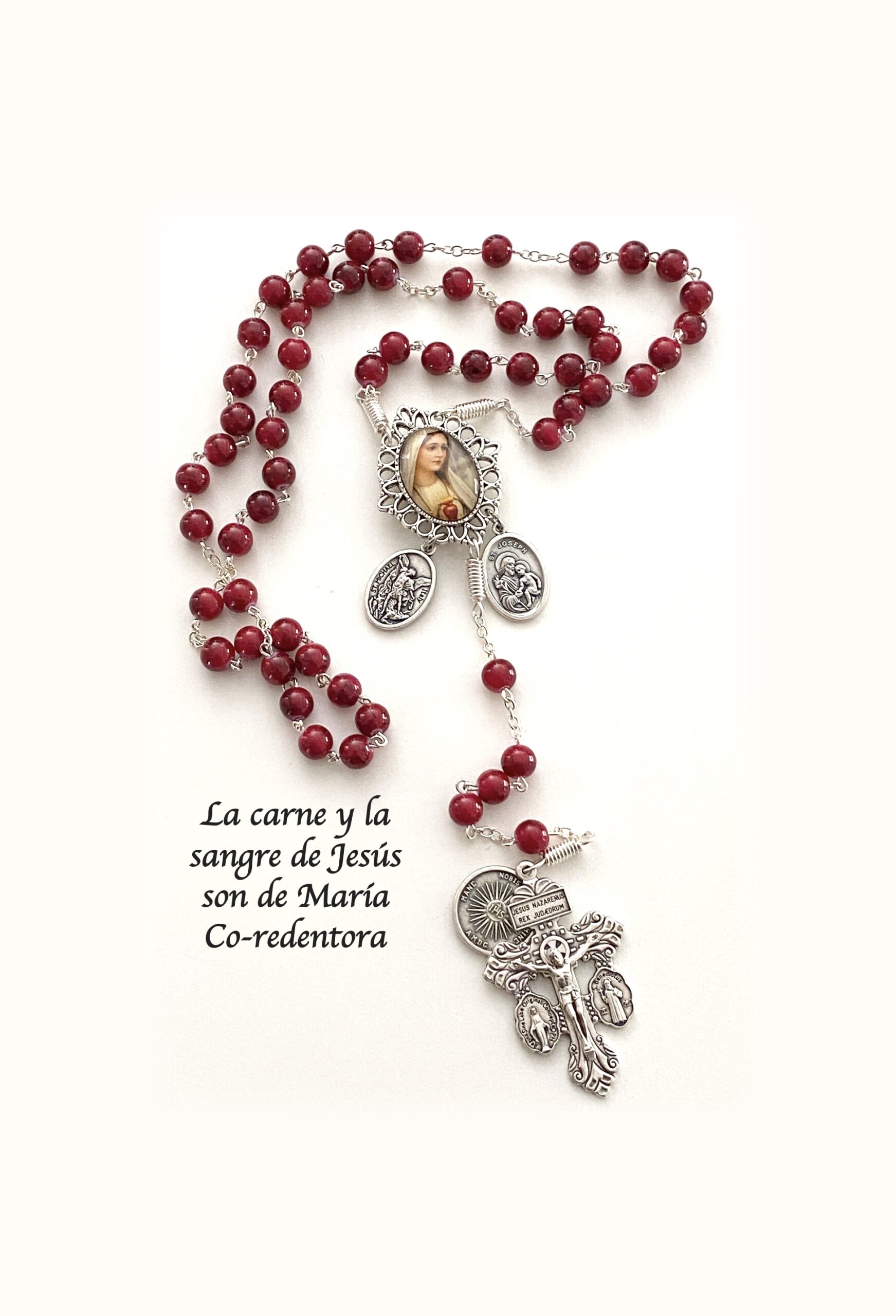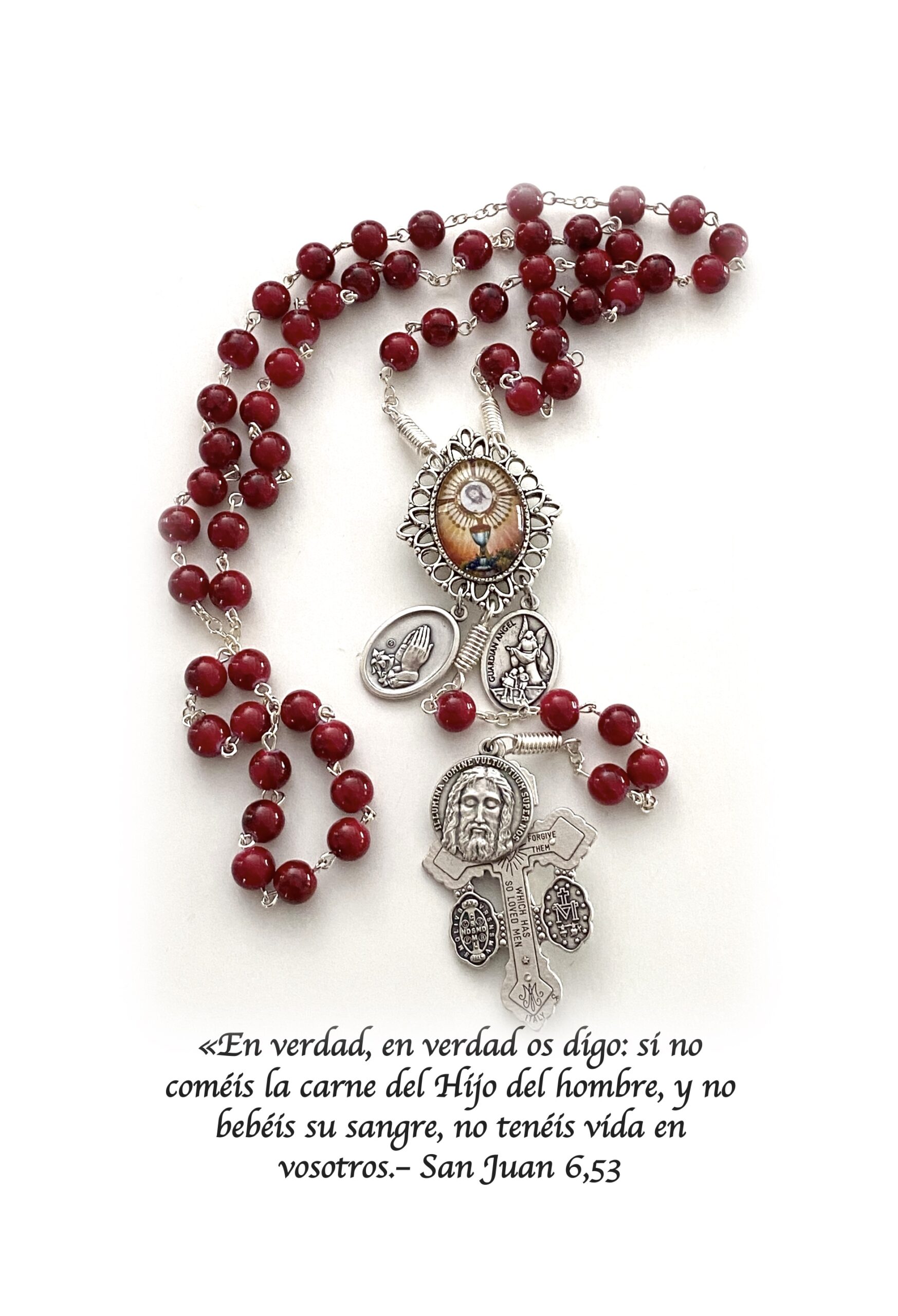 • Rosario en vidrio cuentas de 8  mm en honor a La Eucaristia