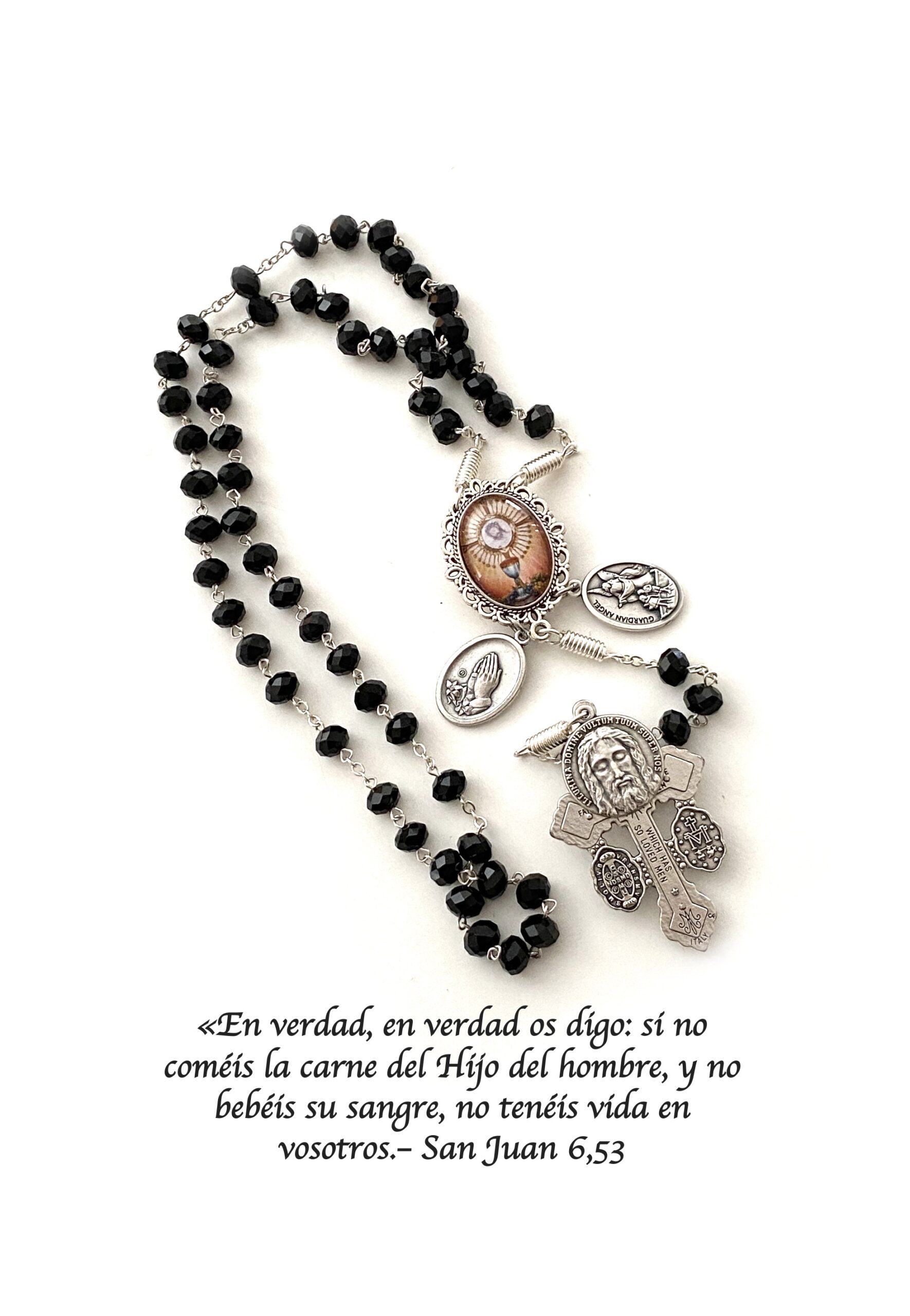- Rosario en vidrio cuentas de 7/8 mm en honor a La Eucaristia